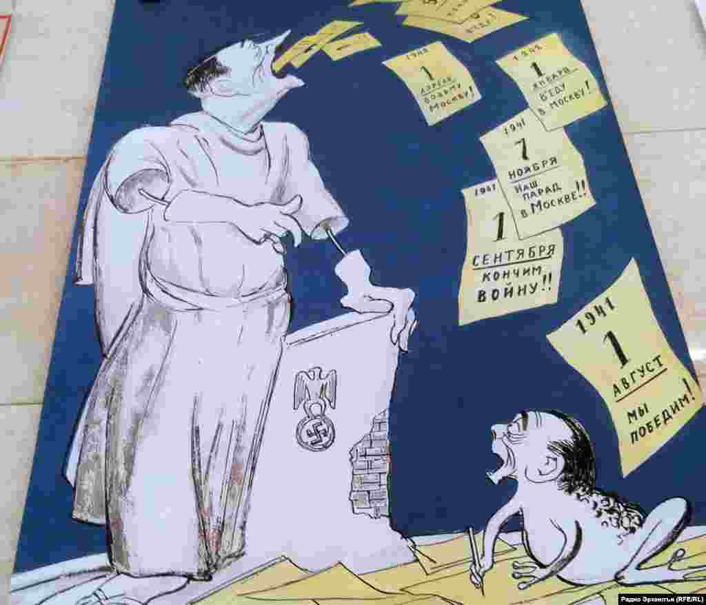 7 маялда МахIачхъала шагьаралъул тарихалъул музеялда тIобитIана «Гитлер капут!» абураб экспозиция. Гьенир рихьизе лъун руго КIудияб ВатIанияб Рагъулги гьелда хадусел соназдаги рахъарал карикатураби, рагъулаб сатираялъул асарал. Гьезул авторал релъулел руго Гитлерил фашизмалда тIад. Экспозициялде щвана нижер мухбир Зульфия ХIажиева.