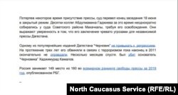 Следствие в деле редактора отдела "Религия" дагестанского еженедельника "Черновик" Абдулмумина Гаджиева не основано на убедительных вещественных уликах, в связи с чем журналист незамедлительно должен быть освобожден, заявлил руководитель отдела Восточной Европы и Центральной Азии "Репортеров без границ" Йоханн Бир.