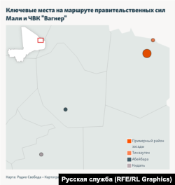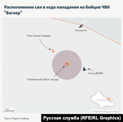 В субботу стало известно о самом крупном поражении, которое российские наёмники потерпели за время своего присутствия в Африке: при отступлении от населенного пункта Тинзаутен на севере Мали они попали в засаду и потеряли убитыми несколько десятков человек. Радио Свобода рассказывает, как развивались события субботнего боя и какие интересы Россия преследует в этой африканской стране.