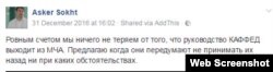 Между тем такая тенденция, видимо, не пугает некоторых черкесских общественников. Так, на своей странице в фейсбуке заместитель председателя "Адыгэ хасэ" Краснодарского края Аскер Сохт написал: "Ровным счетом мы ничего не теряем от того, что руководство КАФФЕД выходит из МЧА. Предлагаю, когда они передумают, не принимать их назад ни при каких обстоятельствах".