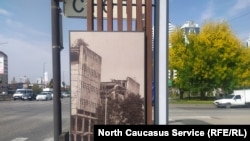 В центре Грозного появились инсталляции с черно-белыми фотографиями разрушенного от военных действий города. Это сделано для того, "чтобы гости смогли оценить, какие изменения произошли за это время, а также смогли узнать историю города", говорит сотрудник мэрии Грозного в эфире местного телеканала.