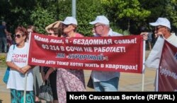 В субботу более ста человек в Сочи присоединились к всероссийской акции протеста обманутых дольщиков. В Краснодарском крае олимпийская столица лидирует по количеству людей которые столкнулись либо со срывом сроков сдачи объектов, либо и вовсе остались у разбитого корыта. По официальным данным, речь идет по меньшей мере о 3000 человек, не считая членов их семей. Это в несколько раз больше, чем во всех остальных регионах Краснодарского края, взятых вместе. Практически все выступающие на митинге говорили о том, что виноваты в сложившейся ситуации городские власти.