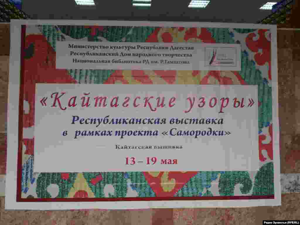 МахIачхъалаялда Миллияб библиотекаялда тIобитIана "Кайтагские узоры" ("Хайдакъалъул накъищал") абураб экспозиция. Гьенир рихьизе лъун рукIана халичабазда, тIансабазда некIсиял дагъистанияз рахъулел рукIарал накъищал. Умумузул заманалдаса гьанжелъагIан цIунун хутIун руго гьел Хайдакъ мухъалда. Абизе кола, хайдакъаз гIадал халичаби Дагъистаналда цойги бакIалда кирниги рессуларин. Гьезул руго гIицIго жидеего хасиятал накъищалги кьералги.