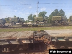 Этот же пользователь тиктока опубликовал и несколько других видео, на одном из которых, в частности, виден состав с военными бортовыми автомобилями "КамАЗ", "Урал" и бензовозами.