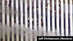 Люди призывали на помощь из горящей Северной башни Всемирного торгового центра. Всего там погибло 1366 человек, находившихся на верхних этажах Северной башни ВТЦ. Большинство погибли в момент столкновения самолета с башней, остальные – из-за пожара и обрушения здания.