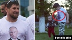 Однако в отличие от него, сам Рамзан Ахматович предпочитает отцу президента России Владимира Путина. Фотография слева - не фотошоп, Кадыров часто показывается на люди с лицом Путина на груди. В его коллекции есть и другие предметы одежды с тем, чьим "пехотинцем" он как-то назвал себя.