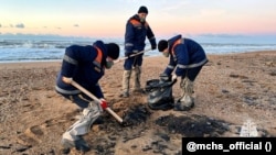 О работах по очистке прибрежной зоны МЧС рассказало утром 18 декабря. Согласно официальной информации, в них участвуют более тысячи человек и свыше 100 единиц техники. По данным местных активистов, спасателям помогают более четырех тысяч волонтеров – они собирают нефтепродукты в мешки для последующей утилизации и пытаются помочь пострадавшим животным, в Анапе открыли пункт спасения птиц.